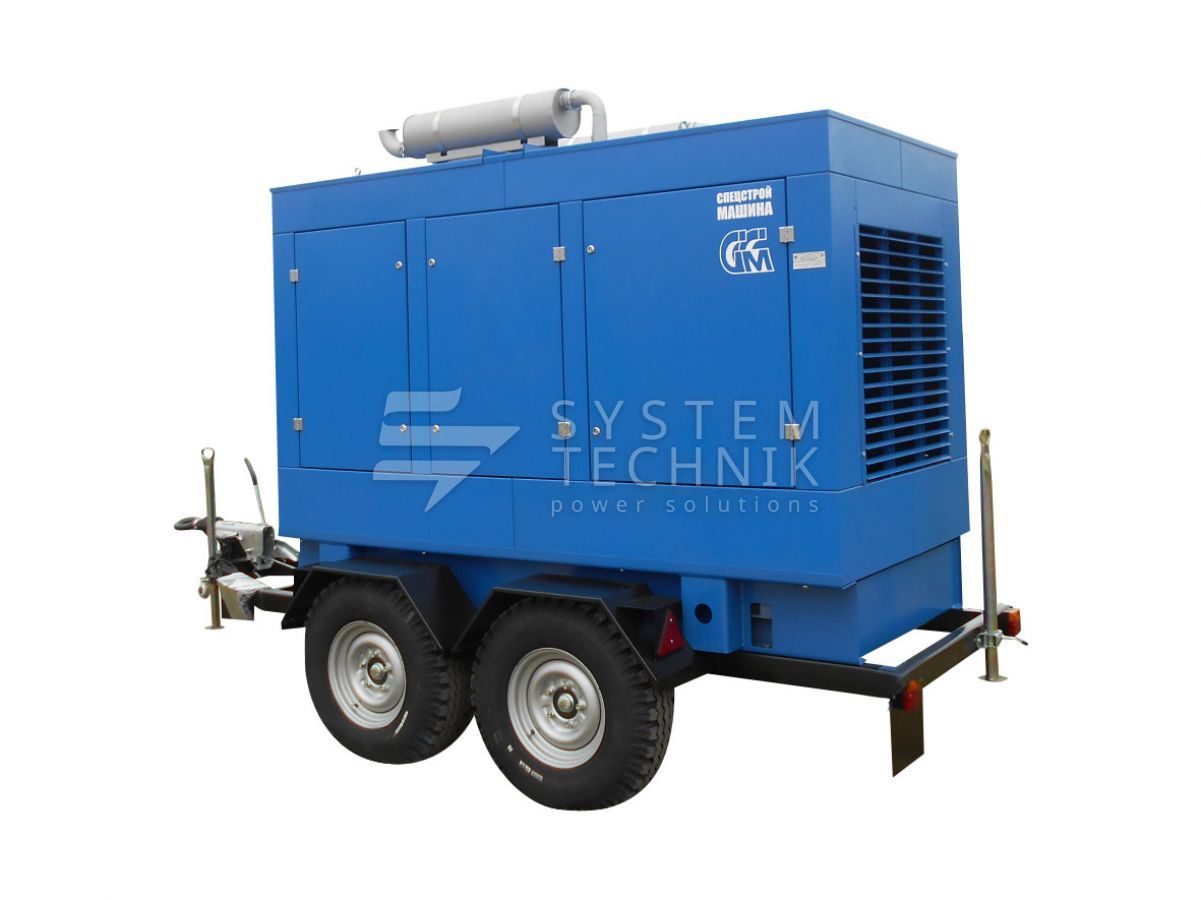 - ССМ ЭД-160-Т400-1РПМ2 в погодозащитном кожухе на шасси на прицепе